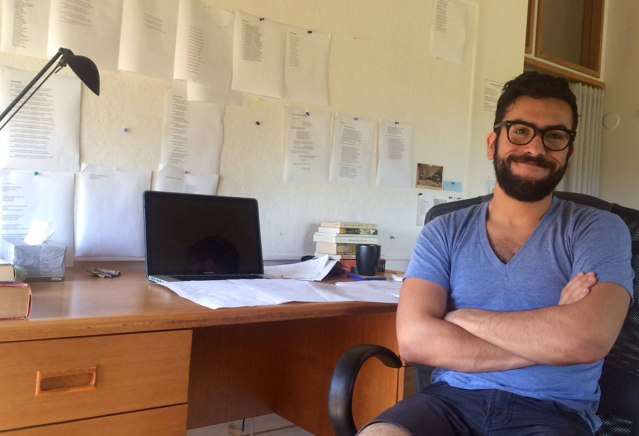 He came with a list of poems to work on in addition to the larger project of his MFA thesis. One poem in particular — a challenging piece about family and family violence — has really taken off. “It was like holding the loose fabrics of different events and not knowing how they would fit,” he says. After long interviews with both of his parents, a six-page poem grew to sixteen pages.