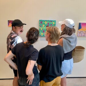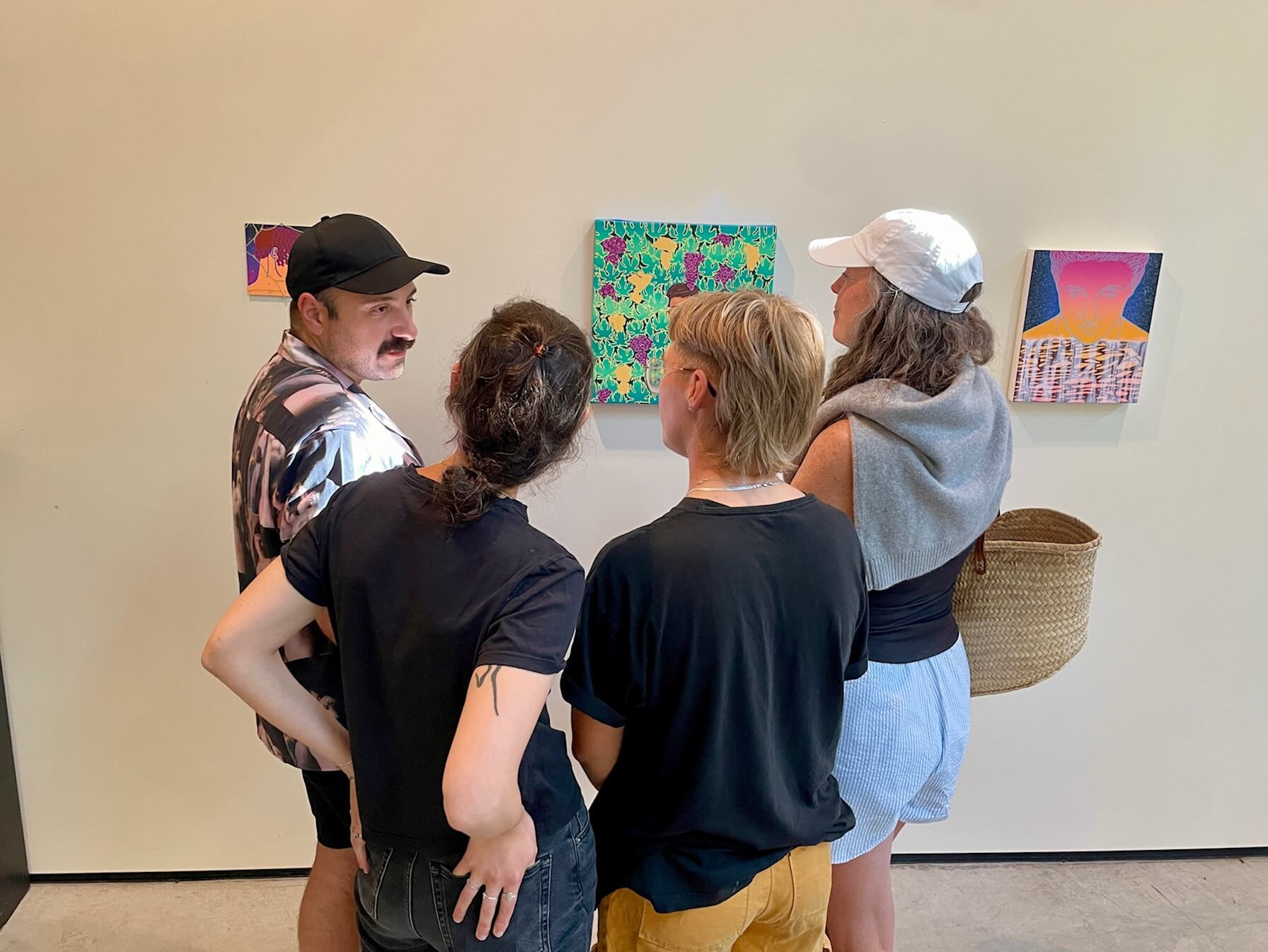 Family Portrait, above (clockwise, from standing L): visual artist Roger Ferney Cortés, playwright Alice Eve Cohen, photographer Wayne Liu, poet Obi Taswell, and visual artist Paul Anagnostopoulos.