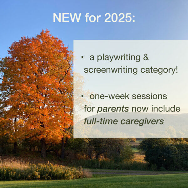 - Parents AND full-time caregivers: Based on valuable feedback from our community, we are expanding our one-week residencies for parents with dependent children at home to include full-time caregivers. Full-time caregivers, regardless of the age of their dependent, can now apply for these shorter sessions. (And there will be two such sessions in 2025. See below.)
