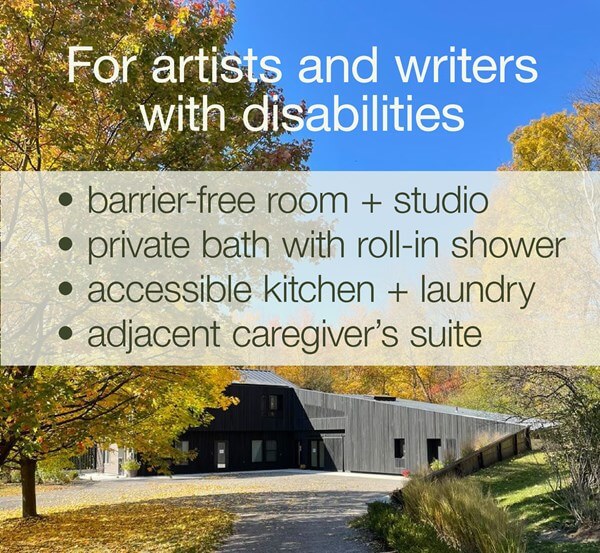 Artists and writers with physical disabilities or mobility issues are encouraged to apply. Completed in 2021, our new addition and partial renovation of the studio building includes: