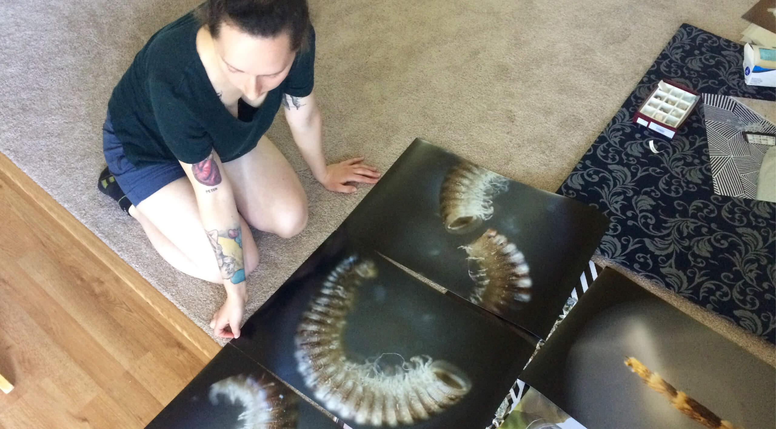 Image: Rachel in her studio during her residency at Saltonstall, summer 2016.