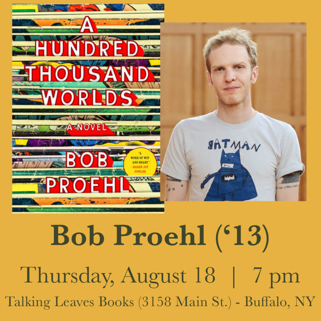 Buffalo, here we come! On Thursday, August 18 at 7 pm, we will be joining Buffalo native Bob Proehl (’13) for a reading, Q&A, and book signing for his new novel, A Hundred Thousand Worlds, at Talking Leaves Books (3158 Main St.)