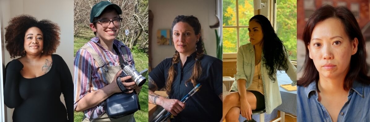 Today, we welcome five artists and writers for our second two-week residency of the season; they are (l-r above):